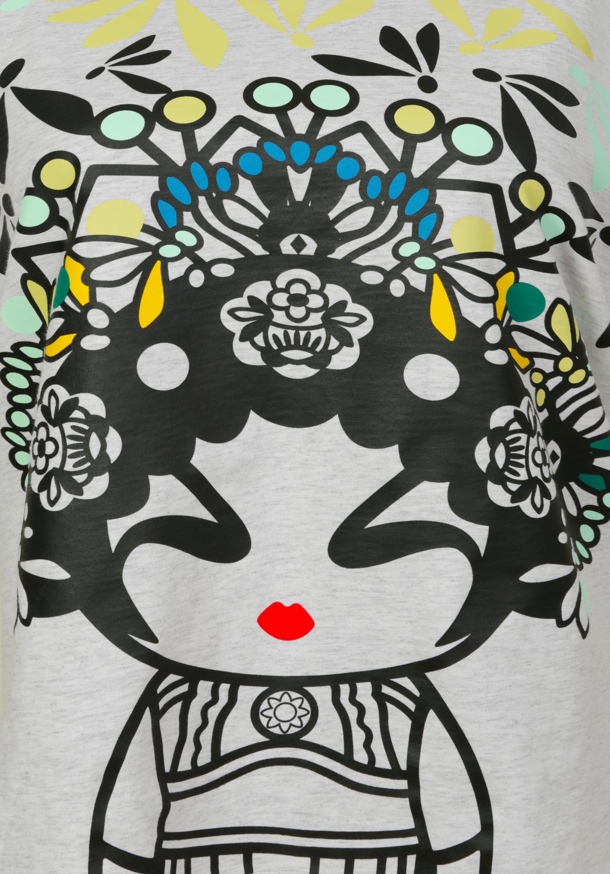 Women’s Opera Girl Plastic Print Tee Grey with Opera Girl’s iconic graphic emblazoned across the chest. This Opera Girl icon is a 100% cotton luxe jersey tee with a round neck, short sleeves and a straight hem.